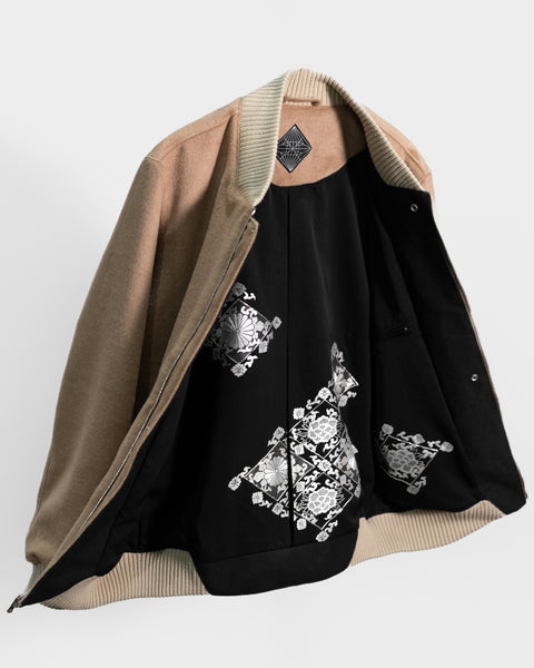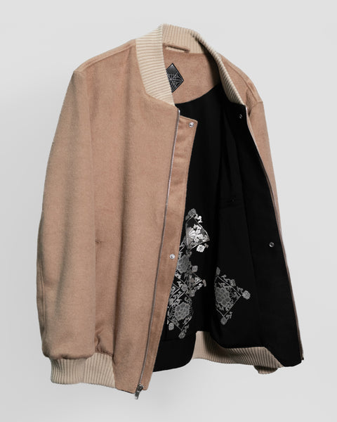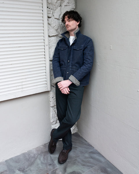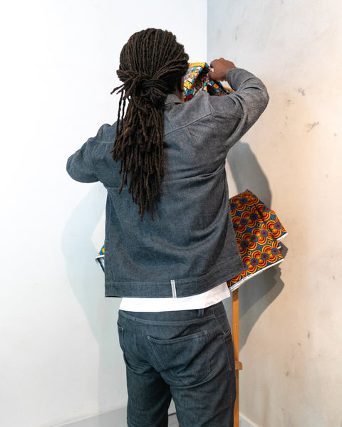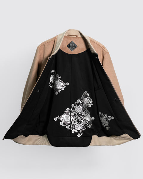 Peaked lapel style, with upcyled vintage silk haori lining.