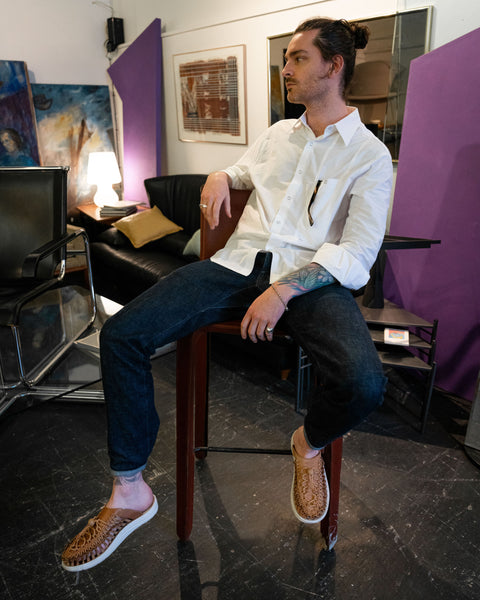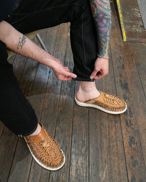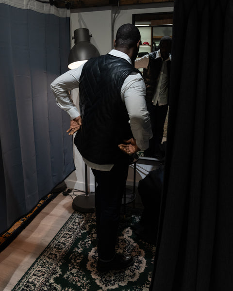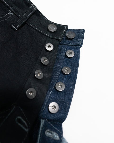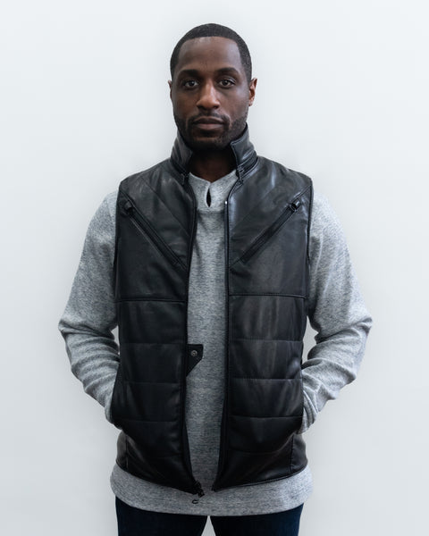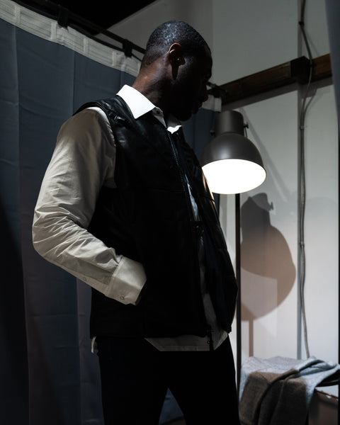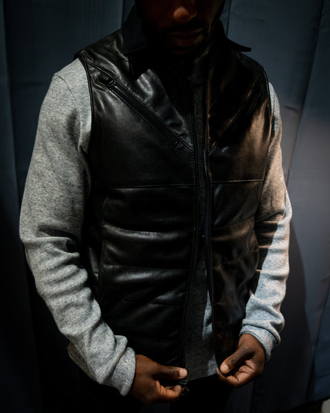 Upcycled genuine leather panels, with YKK zippers and Prym snaps.