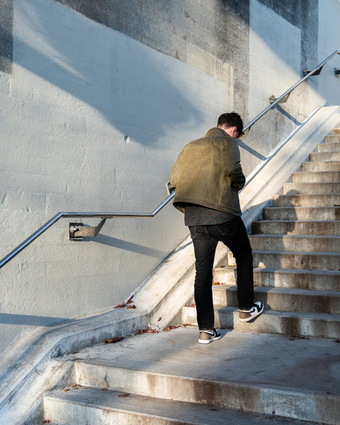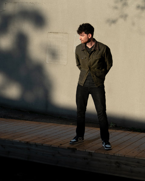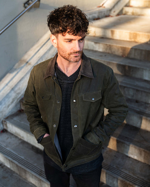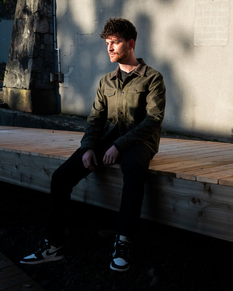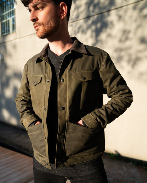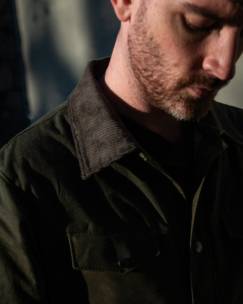 Wax cotton outer, corduroy collar, gunmetal Prym hardware.