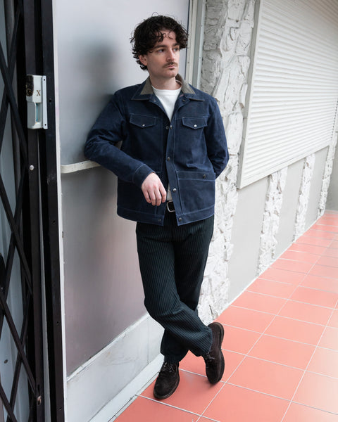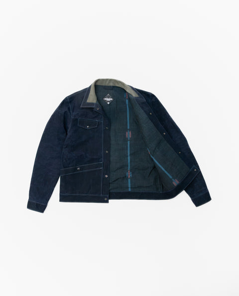 Corduroy pigskin leather outer, with upcycled vintage kimono lining.