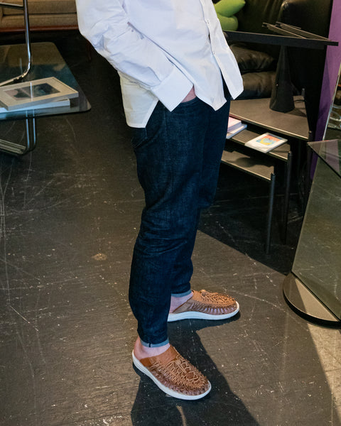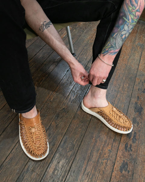 Ecco leather perforated mesh cowhide, with vintage silk kimono lining.