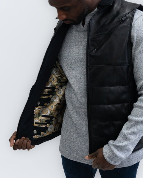 Aniline Nappa lambskin outer, with upcycled kimono lining.